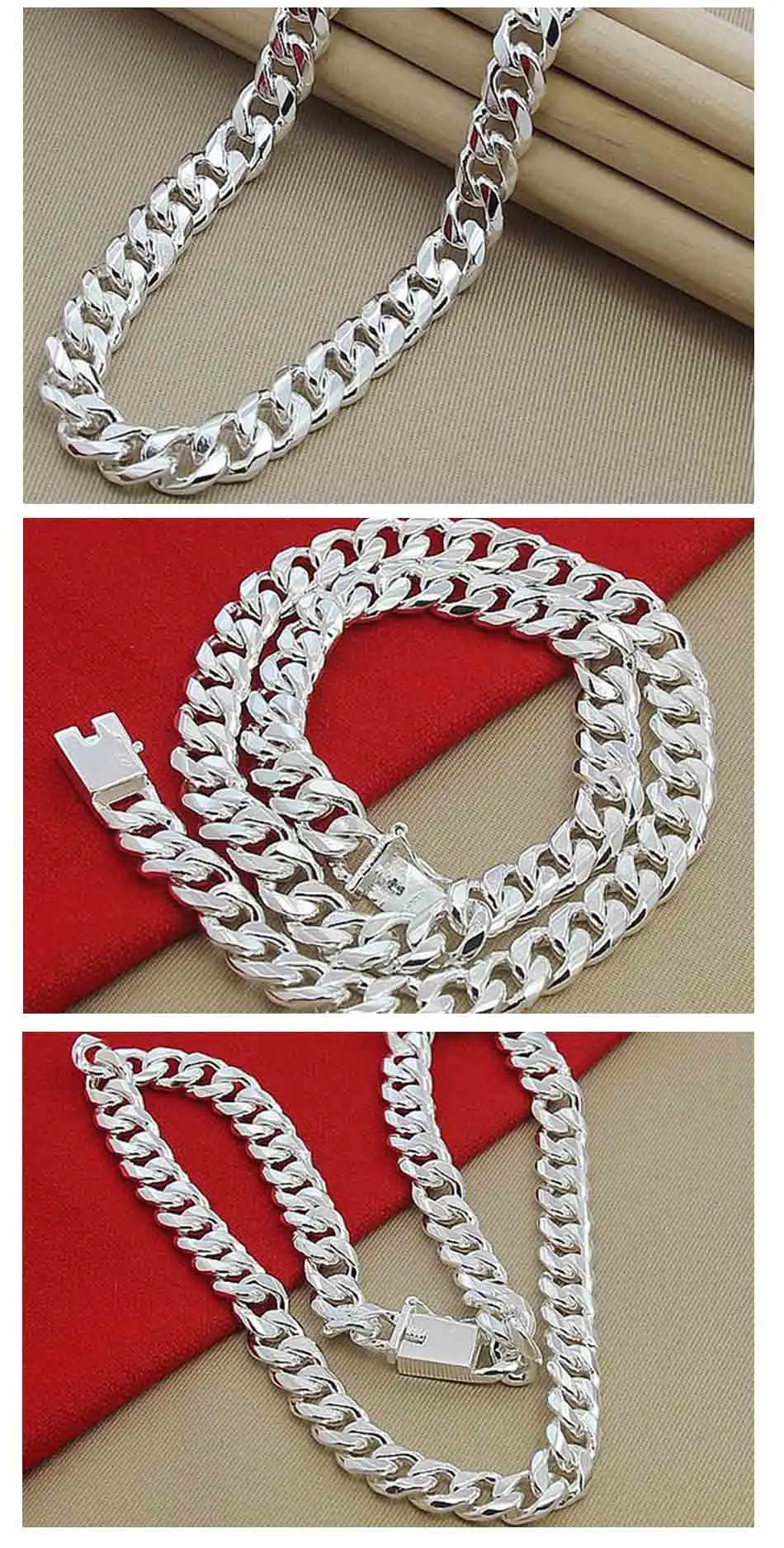 10MM Men Necklace Chain 925 Silver Necklaces Fashion Jewelry Accessories