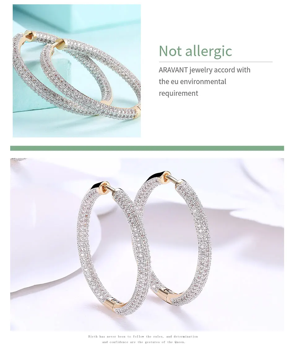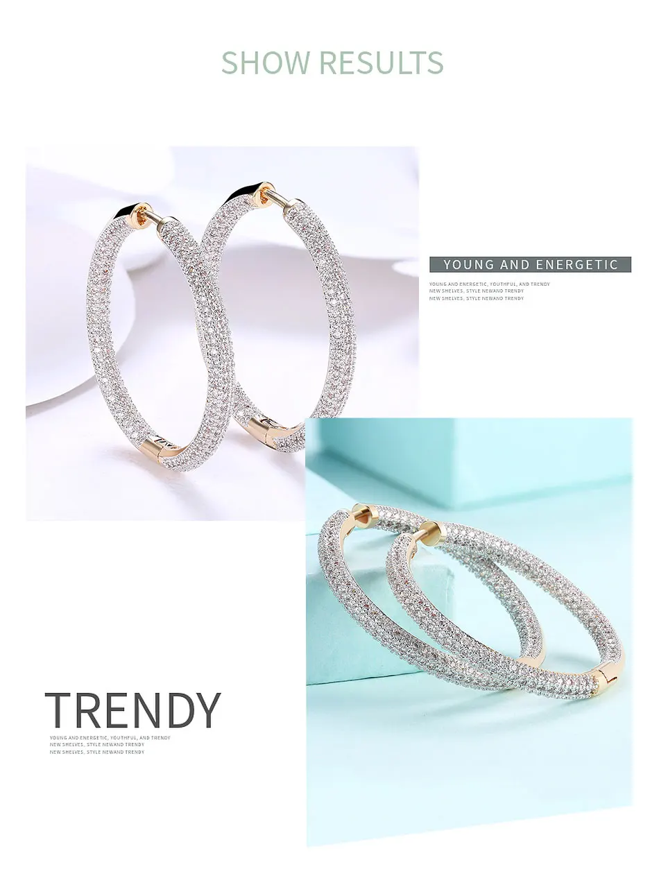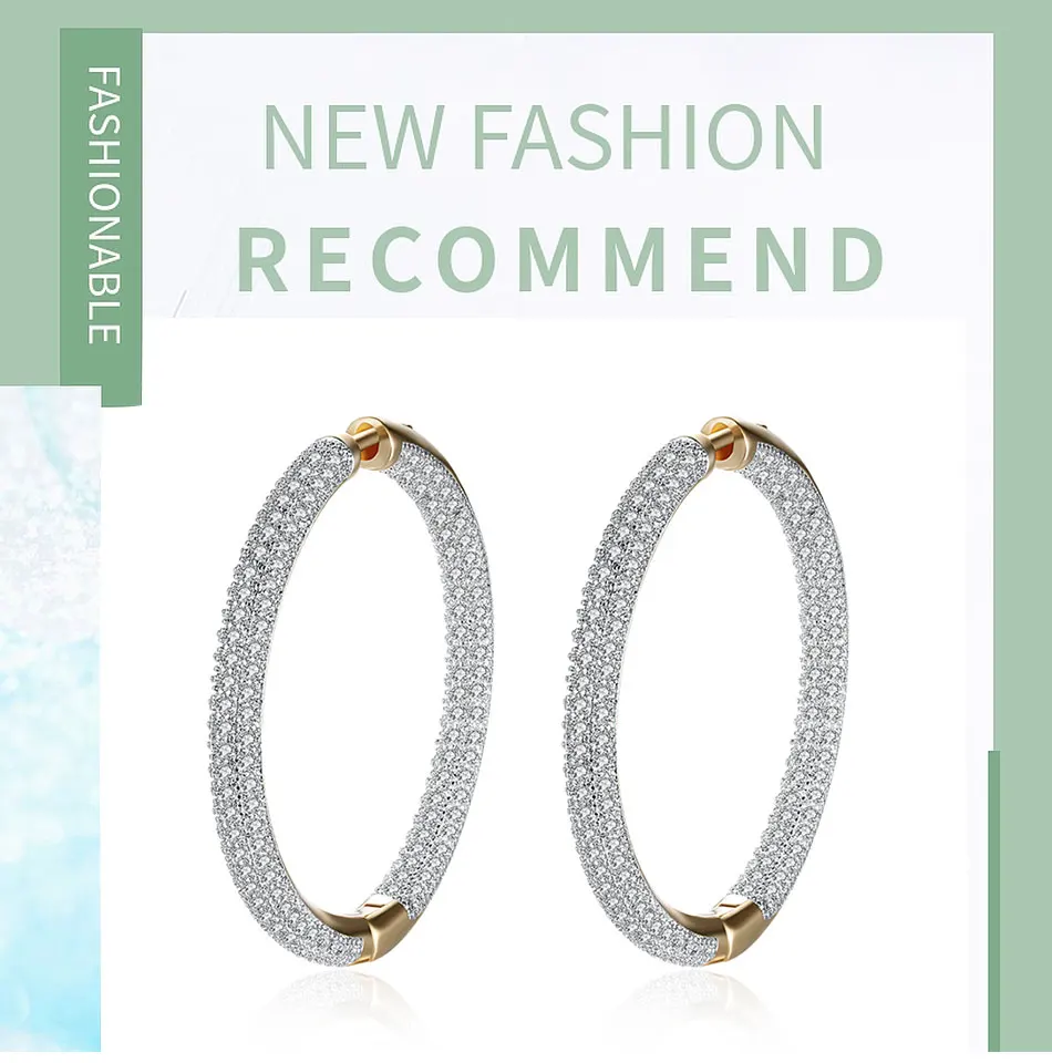 925 Silver 34mm 18K Gold Circle Hoop Earrings For Women Fashion Wedding Jewelry
