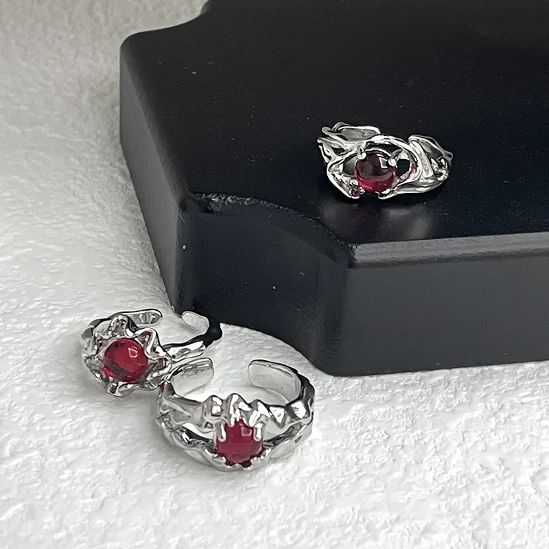 Irregular Gemstone Ring Aesthetic Girl Hollow Red Stone Ring Women’s Liquid Hollow Ring Vintage Jewelry Accessories