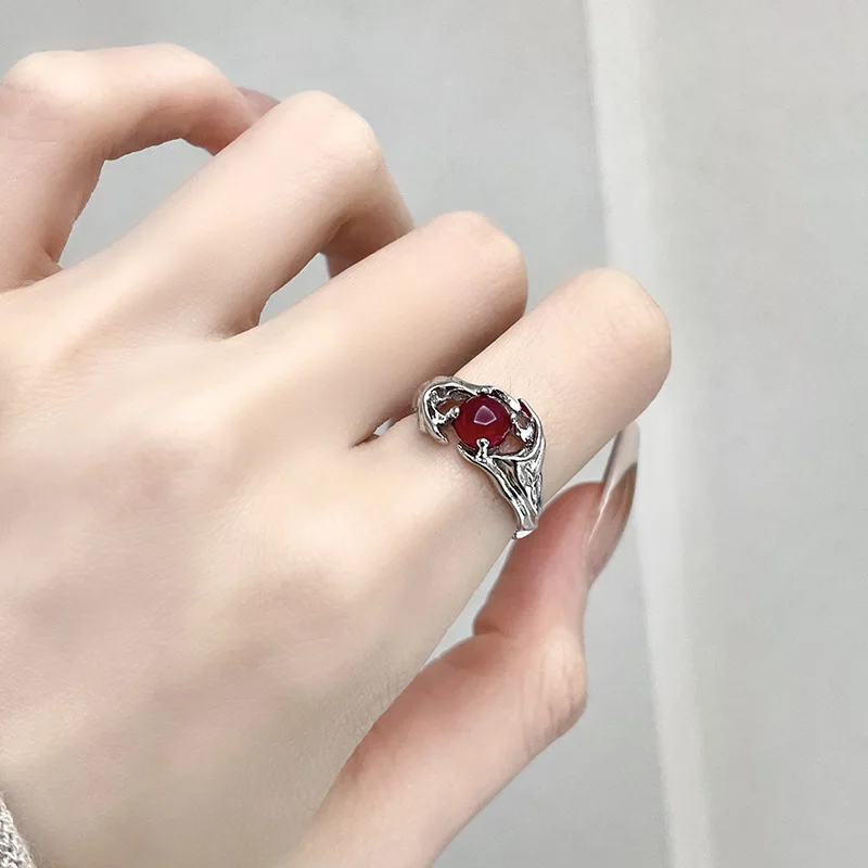 Irregular Gemstone Ring Aesthetic Girl Hollow Red Stone Ring Women’s Liquid Hollow Ring Vintage Jewelry Accessories